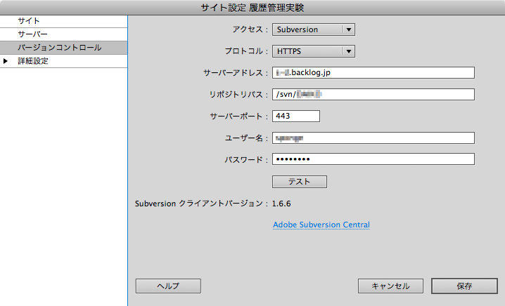 使い方は、Dreamweaver CS5にある「サイト設定」→「バージョンコントロール」でBacklogのリポジトリパスを設定するだけ。かんたーん。